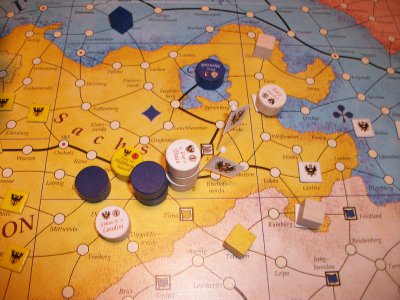 Game 12: Andreas Buschhaus gives his debut in the role Frederick. And he fights defiantly. However, after 13 turns it's over. Winners are Steffen Schröder (A) and Klaus Blum (F).
